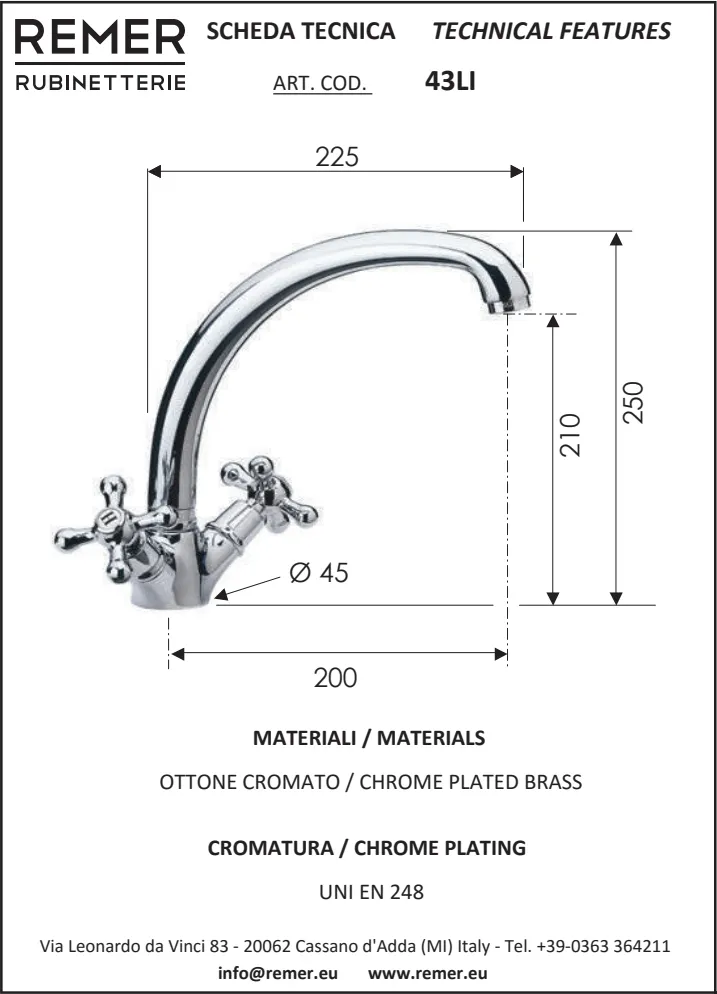 Смеситель для кухни Remer Liberty 43LI сочетает в себе классический дизайн и высокую функциональность, что делает его идеальным выбором для кухни с традиционным или антикварным интерьером. Этот смеситель оснащен поворотным изливом, что обеспечивает удобство во время использования. Серия Liberty предлагает возможность выбора между традиционной или керамической клапанной головкой, добавляя современности в ретро-дизайн. Уникальность модельного ряда COUNTRY проявляется в его двухручковом управлении и разнообразии цветовых решений, включая хром, старую латунь, старую медь и блестящее золото. Смеситель устанавливается на кухонную мойку и требует только одного монтажного отверстия, что упрощает установку. Эта модель станет элегантным акцентом в интерьере вашей кухни, подчеркивая ее утонченный стиль.