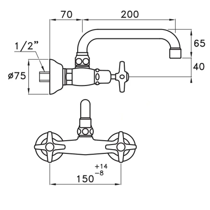 Смеситель для мойки настенный Stella Italica 3245/200, длина излива 200мм хром IT 04006 CR00