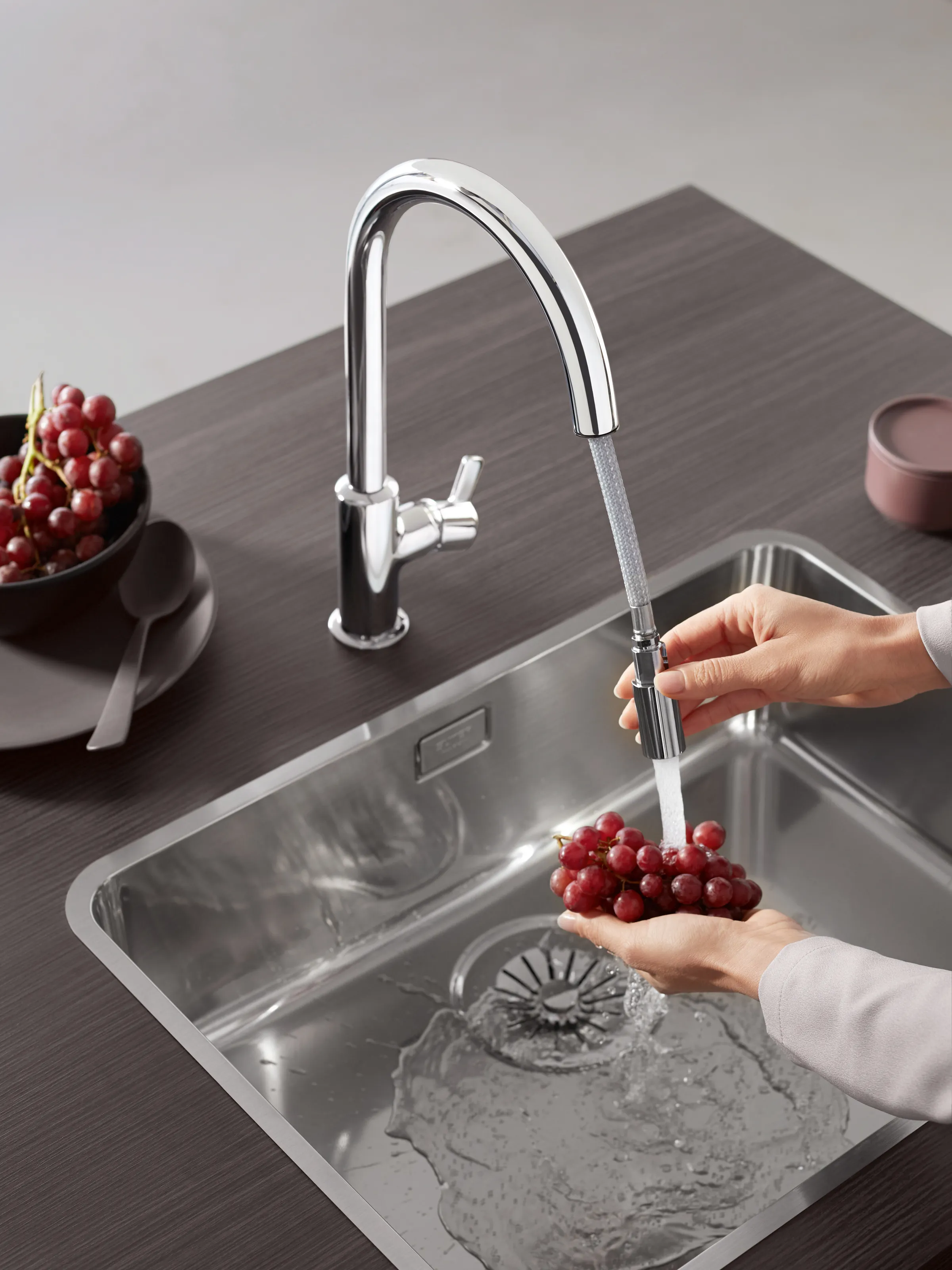 Современный дизайн придает коллекции KLUDI BINGO STAR XS динамичный характер, не лишая их при этом нежности. Утонченный изгиб излива, аккуратный рычаг, и идеально гладкая хромированная поверхность - это