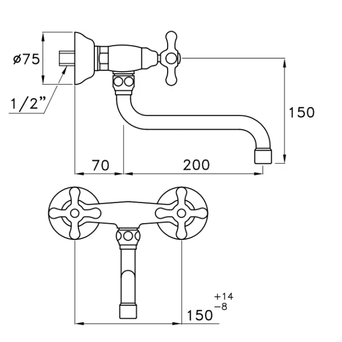 Смеситель для мойки настенный Stella Roma 3243/200, длина излива 200мм хром RM 04001 CR00