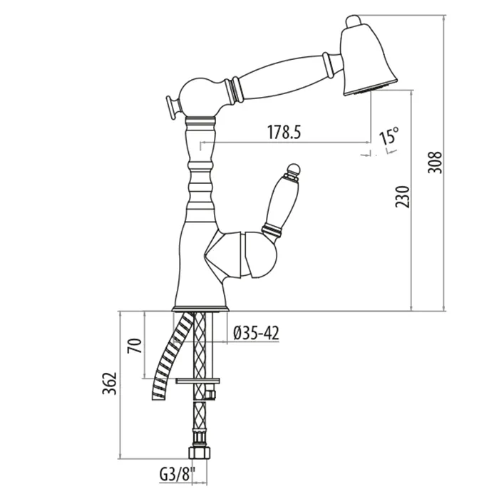 Смеситель для мойки с выдвижным "ручным душем" Gattoni Retro, золото 6013465DOoro