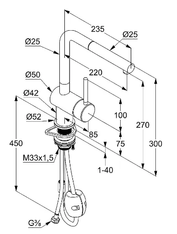 Смеситель KLUDI L STEEL 45851F877 для кухни с выдвижным изливом
