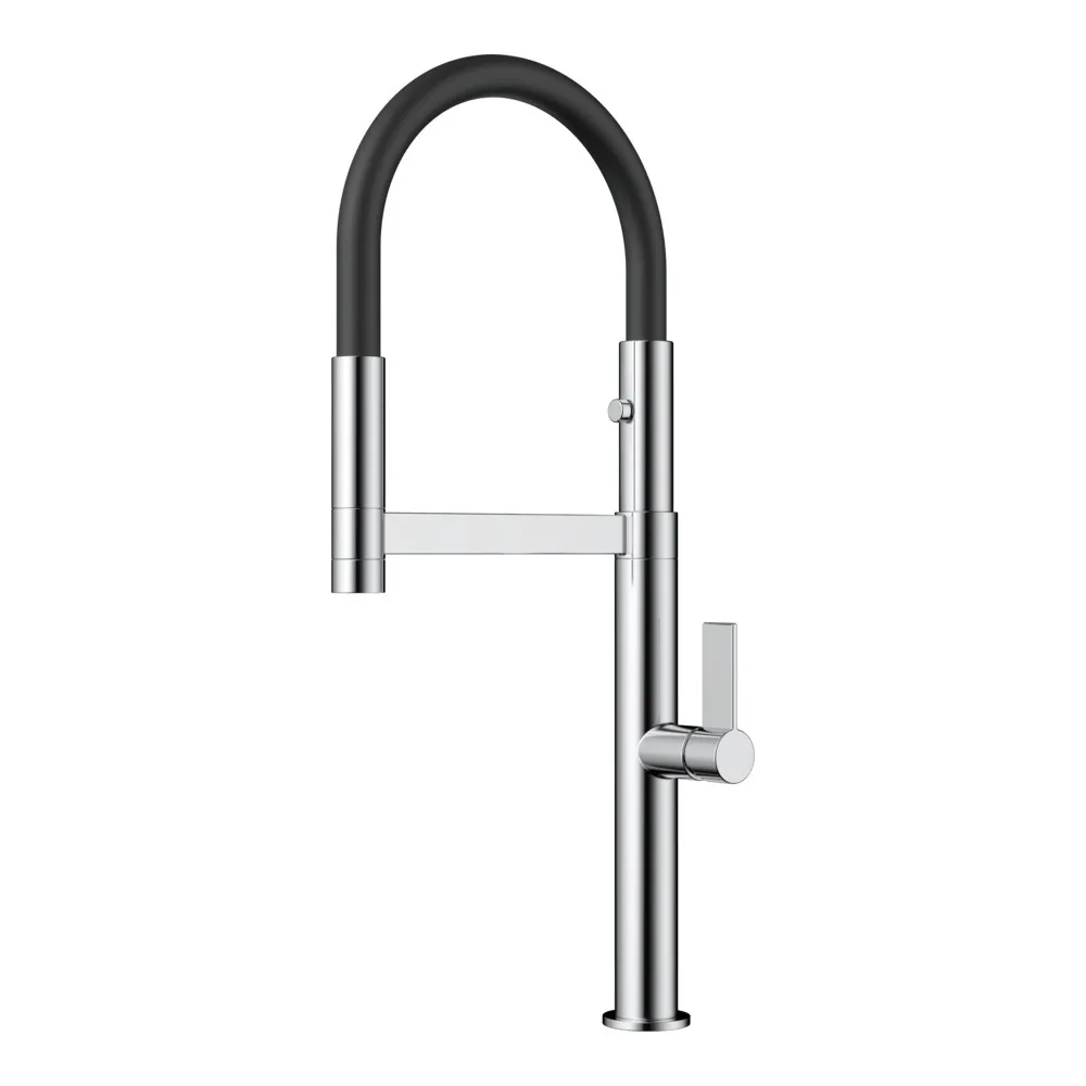 Вытяжной шланг обеспечивает удобство использования смесителя, которое заключается в возможности мытья труднодоступных мест и бережной очистке мелких столовых приборов. С его помощью также можно тщательно промывать овощи, фрукты и посуду после мытья без лишних брызг на столешницу вокруг мойки.