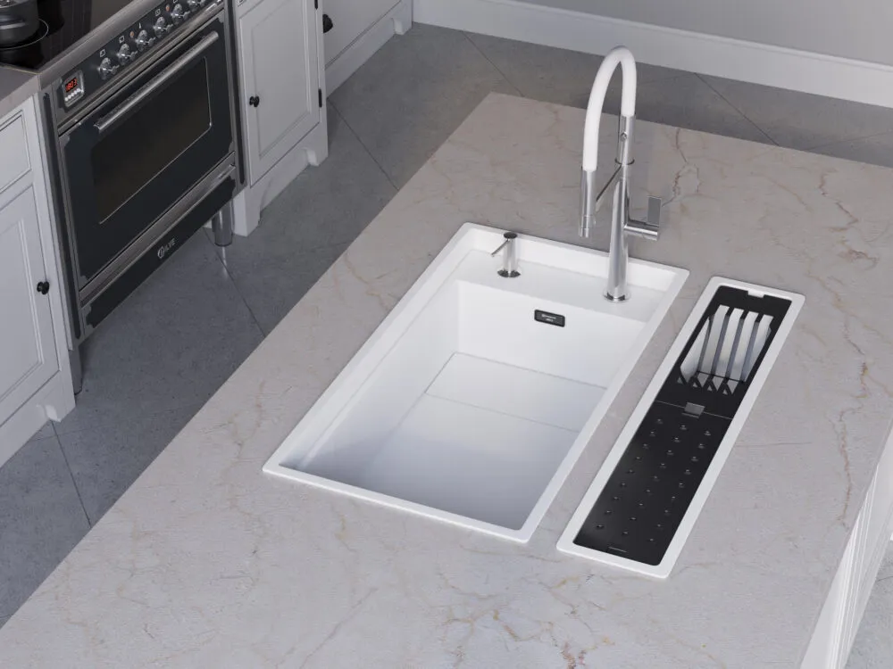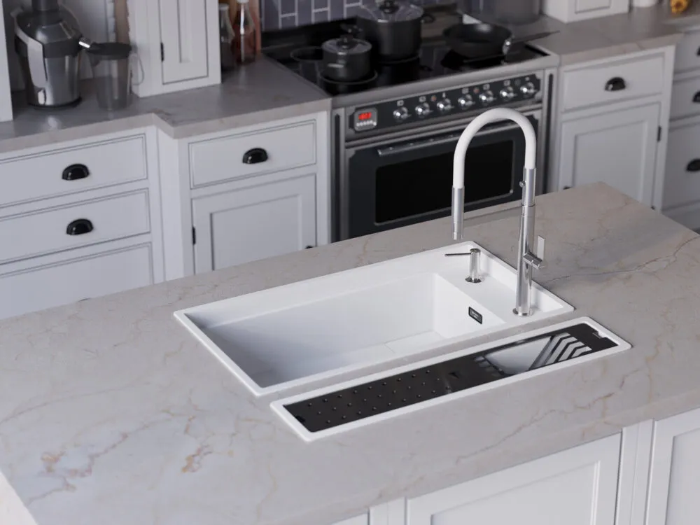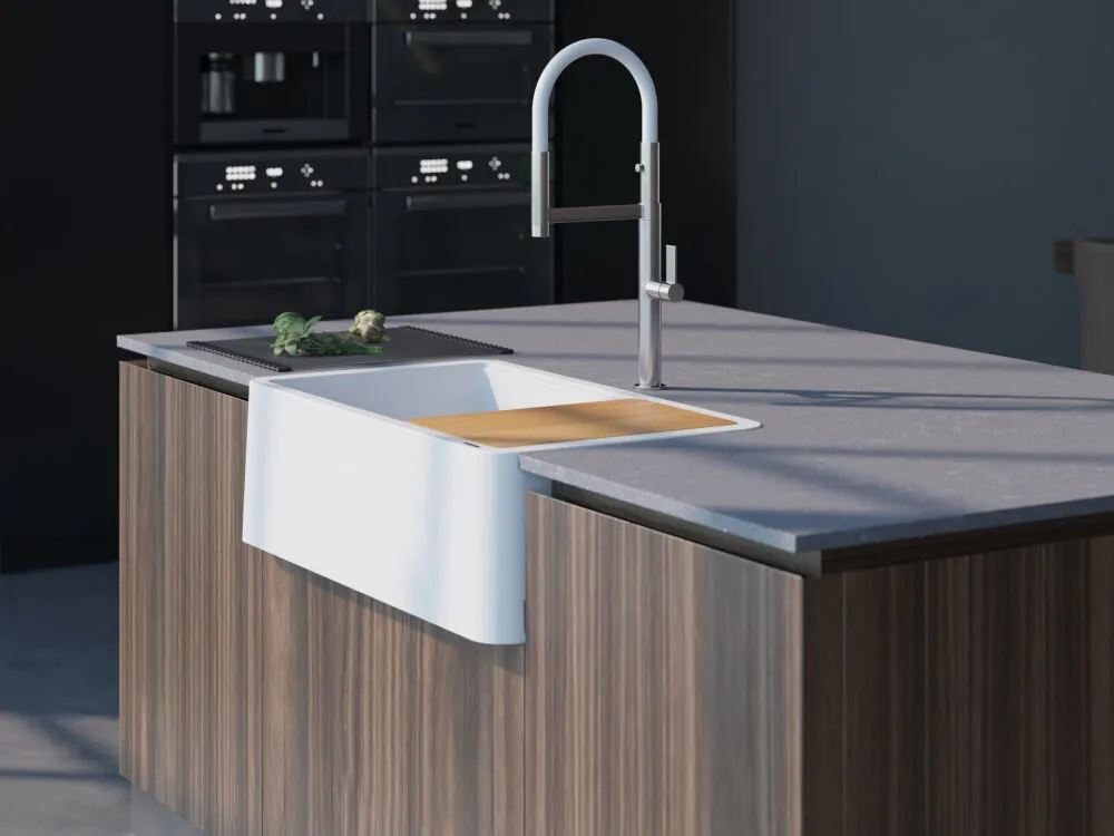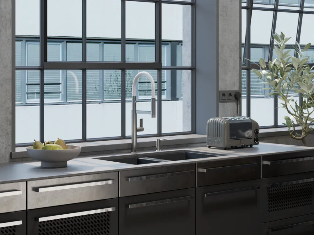 Вытяжной шланг обеспечивает удобство использования смесителя, которое заключается в возможности мытья труднодоступных мест и бережной очистке мелких столовых приборов. С его помощью также можно тщательно промывать овощи, фрукты и посуду после мытья без лишних брызг на столешницу вокруг мойки.