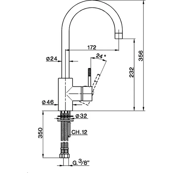 Смесители для кухни Cisal Kitchen однорычажный, на 1 отверстие для кухни,с поворотным изливом 172 мм, хром LS00053021