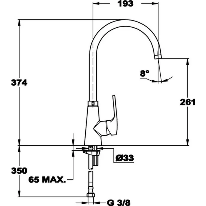 Смесители для кухни Cisal Kitchen однорычажный, на 1 отверстие для кухни,с поворотным изливом 193 мм, хром LC00002021