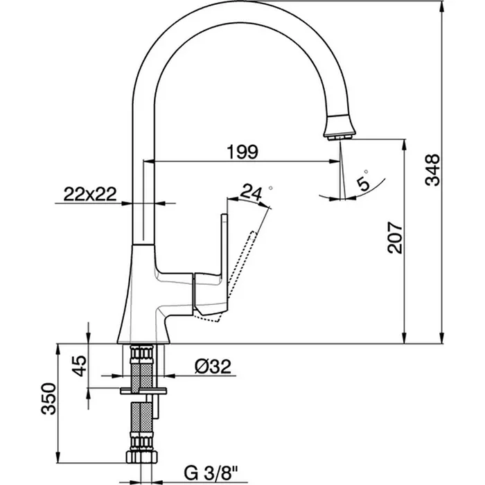Смесители для кухни Cisal Kitchen однорычажный, на 1 отверстие для кухни,с поворотным изливом 199 мм, хром CE00053021