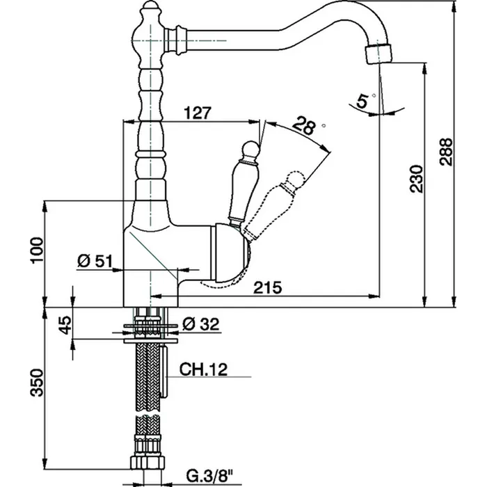 Смесители для кухни Cisal Kitchen однорычажный, на 1 отверстие для кухни,с поворотным изливом 215 мм, хром EM00253021 Акция