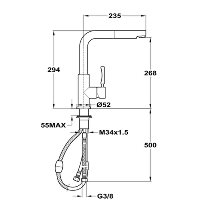 Смесители для кухни Cisal Kitchen однорычажный, на 1 отверстие для кухни,с поворотным изливом 235 мм, нерж сталь LC000070D1