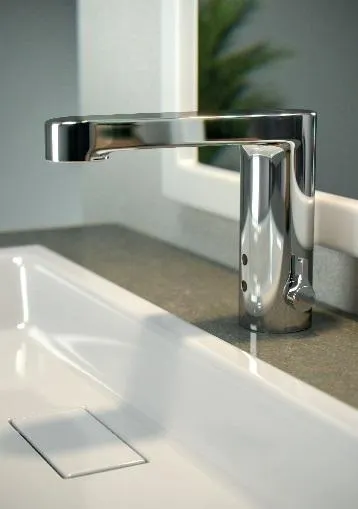 Автоматический смеситель для умывальника Установка на столешницу с автоматической системой активации через встроенный в нее инфракрасный датчик Работа от сети 220 В 50/60 Гц или от 4 батареек АА, обеспечивающих 6 В в случае сбоя питания. Расход 6 л / мин при давлении 3 бара Материал: хромированная латунь CW617N Размеры: 142 высота x 62 ширина x 183 глубина (мм)