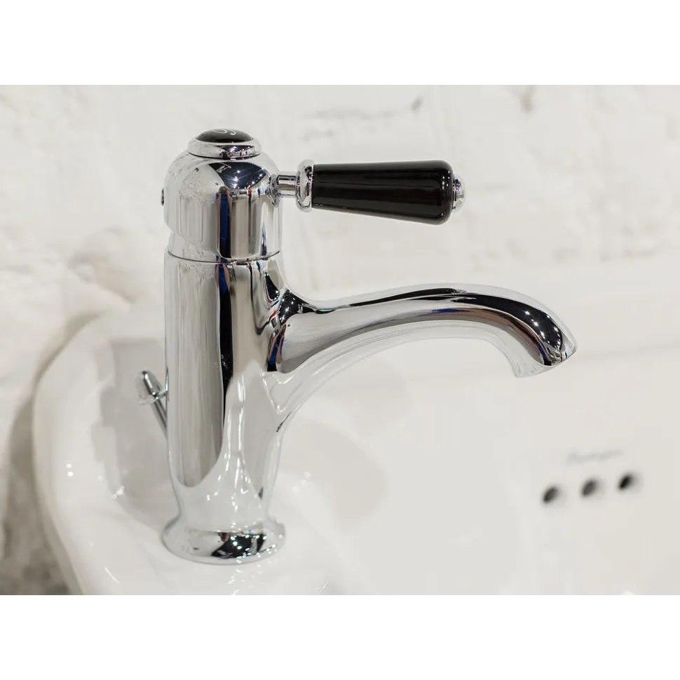 Изюминкой этого необыкновенного смесителя является компактное исполнение. Модель идеально подойдет к небольшим раковинам с одним отверстием.Смеситель с хромированным покрытием и чёрной керамической ручкой. В комплект смесителя входит донный клапан, выпрямитель потока и аэратор.