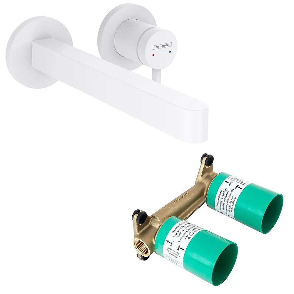 76050700S Set Finoris смеситель для раковины из стены на 2 отв. (76050700+13622180), матовый белый