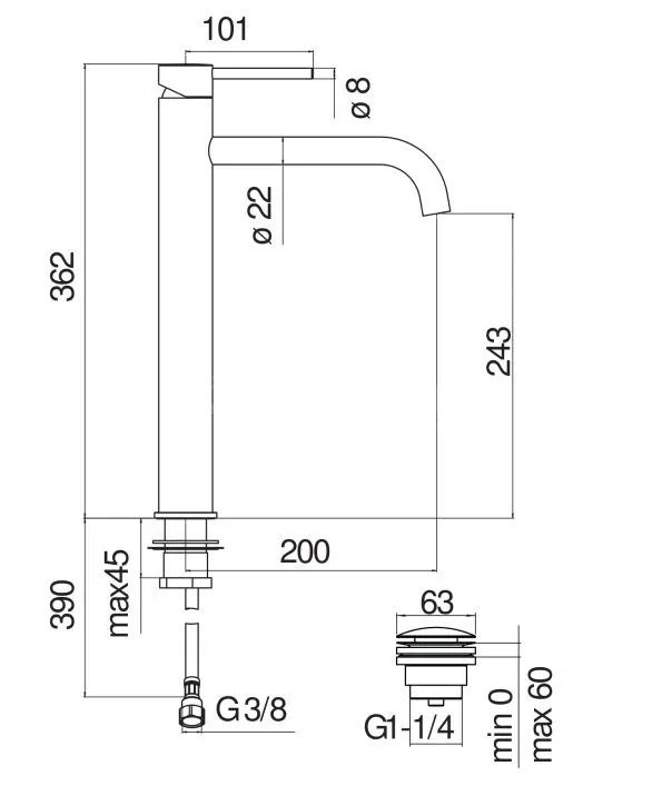 LV00128/2BM LIVE смеситель для раковины высокий, матовый черный