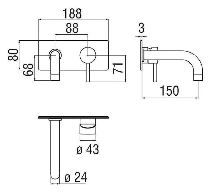 - Длина излива, мм: 150.0