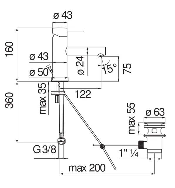 LV00418/1BM LIVE смеситель для раковины, матовый черный