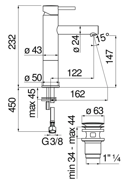 - Донный клапан: в комплекте