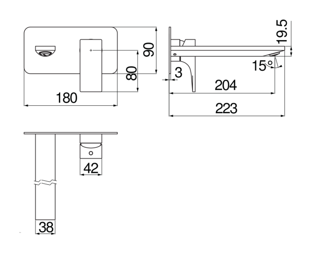 - Длина излива, мм: 204.0