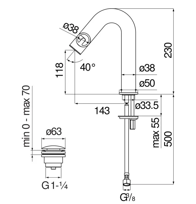 - Высота излива, мм: 118.0