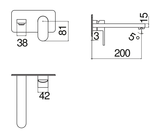 UP94198/1CR UP смеситель для раковины настенный (внешняя часть)