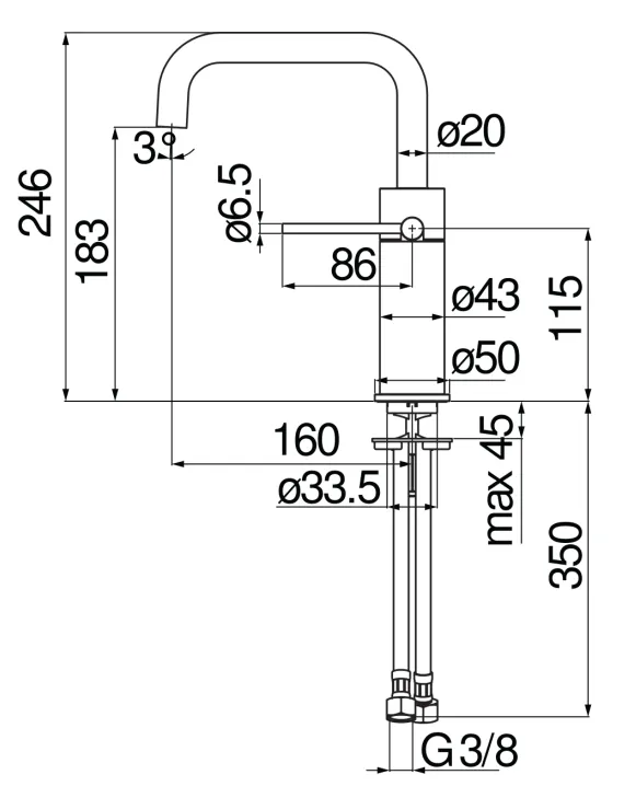 - Высота излива, мм: 183.0