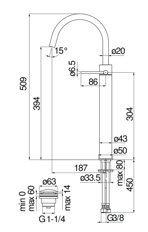 VE125148/2RCP VELIS смеситель для раковины высокий 394, красное золото