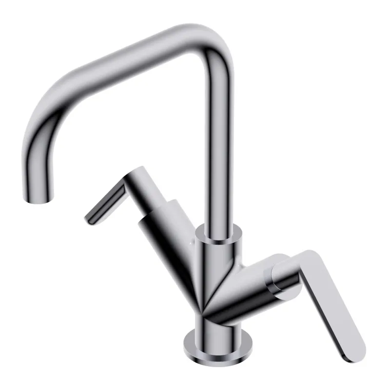 Благодаря поворотному изливу смеситель позволяет направлять поток воды в нужном направлении, что повышает комфорт эксплуатации. Корпус выполнен из прочной и долговечной латуни, устойчивой к коррозии и механическим повреждениям. Внутри установлен надежный керамический картридж, обеспечивающий плавное управление потоком воды и долгий срок службы.