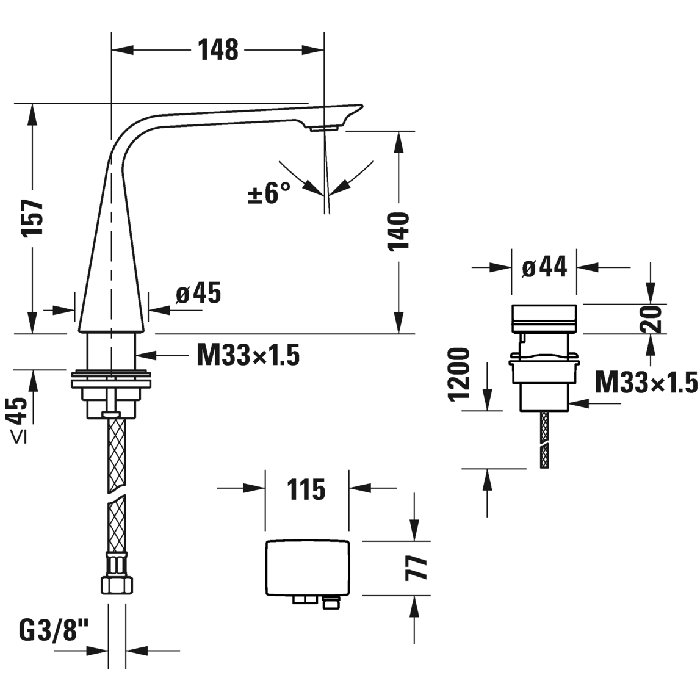 Смеситель для раковины Duravit D.1 D11100008010 электронный с питанием от сети, хром