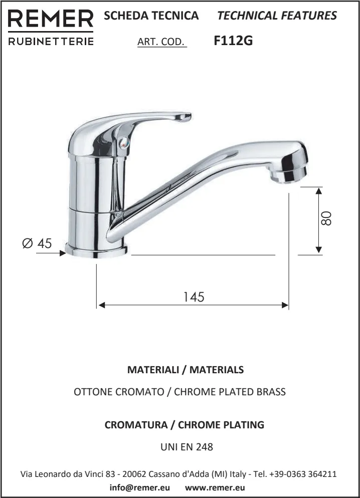 Смеситель Remer 35, изготовленный известным брендом Remer, прекрасно подойдёт как для кухни, так и для вашего умывальника. Это однорычажная модель с поворотным изливом, которая обеспечит вам максимальный комфорт в использовании. Изделие оборудовано современным керамическим дисковым картриджем Ø 35 мм, что гарантирует его долгий срок службы. Вы можете выбрать одну из четырех доступных ручек, а также предпочитаемый цветовой вариант — хром (CR). Смеситель выполнен в классическом стиле с традиционным дизайном излива, что делает его универсальным решением для любого интерьера.