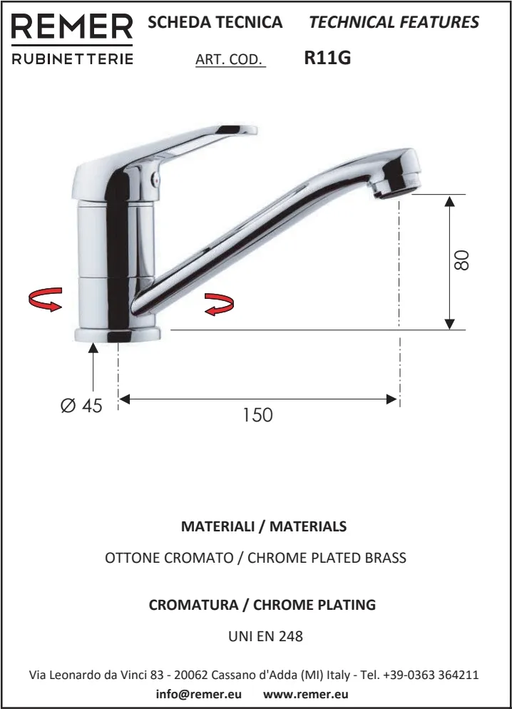 Смеситель для раковины Remer Remix с поворотным изливом R11G — это идеальное решение для вашей кухни или ванной комнаты. Этот однорычажный смеситель подходит для установки на раковину и идеально впишется в любой классический интерьер благодаря своему хромированному покрытию и традиционной форме излива. Благодаря поворотному изливу, вы сможете удобнее пользоваться раковиной, а его эргономичный дизайн обеспечивает простоту управления. Высота излива составляет 80 см, а длина — 150 см, что делает его подходящим выбором для раковин разных размеров. Стильный и функциональный, смеситель Remer Remix поможет создать комфорт в вашем доме.