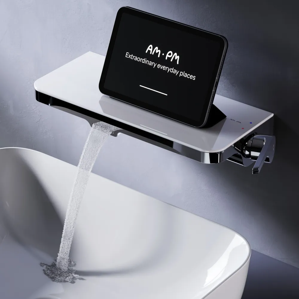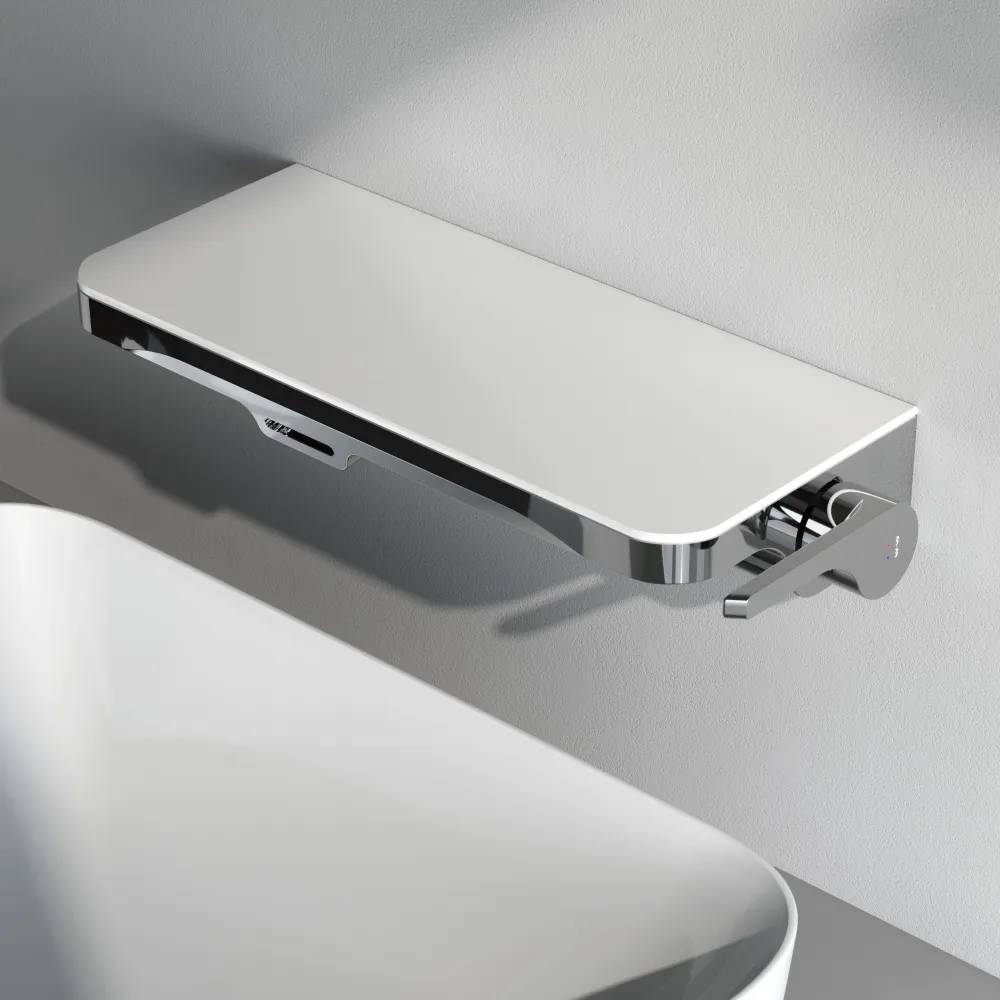 Экстраординарное пополнение самой функциональной коллекции в линейке AM.PM. Впервые в доступном сегменте – встраиваемый смеситель для раковины выполненный в виде полочки с каскадным изливом.