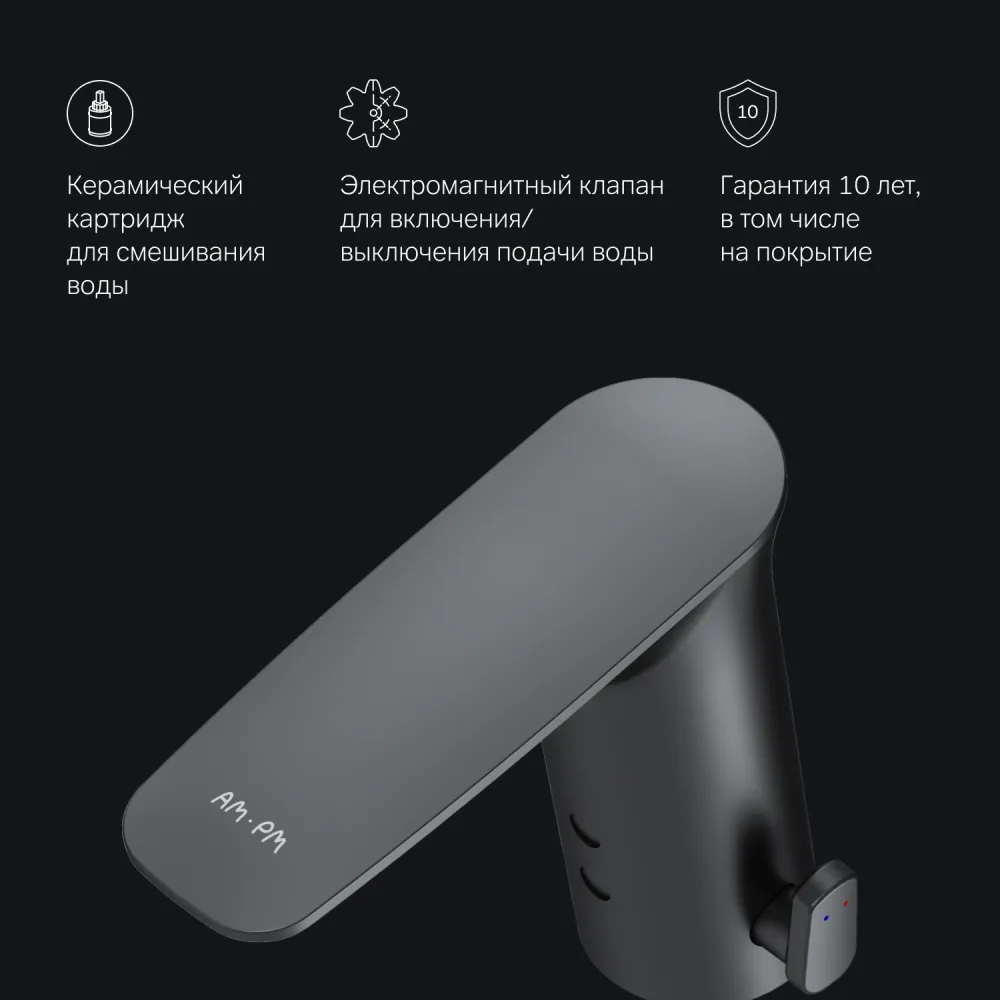 - Тип картриджа: керамический картридж для смешивания воды и электромагнитный клапан для включения/выключения подачи воды