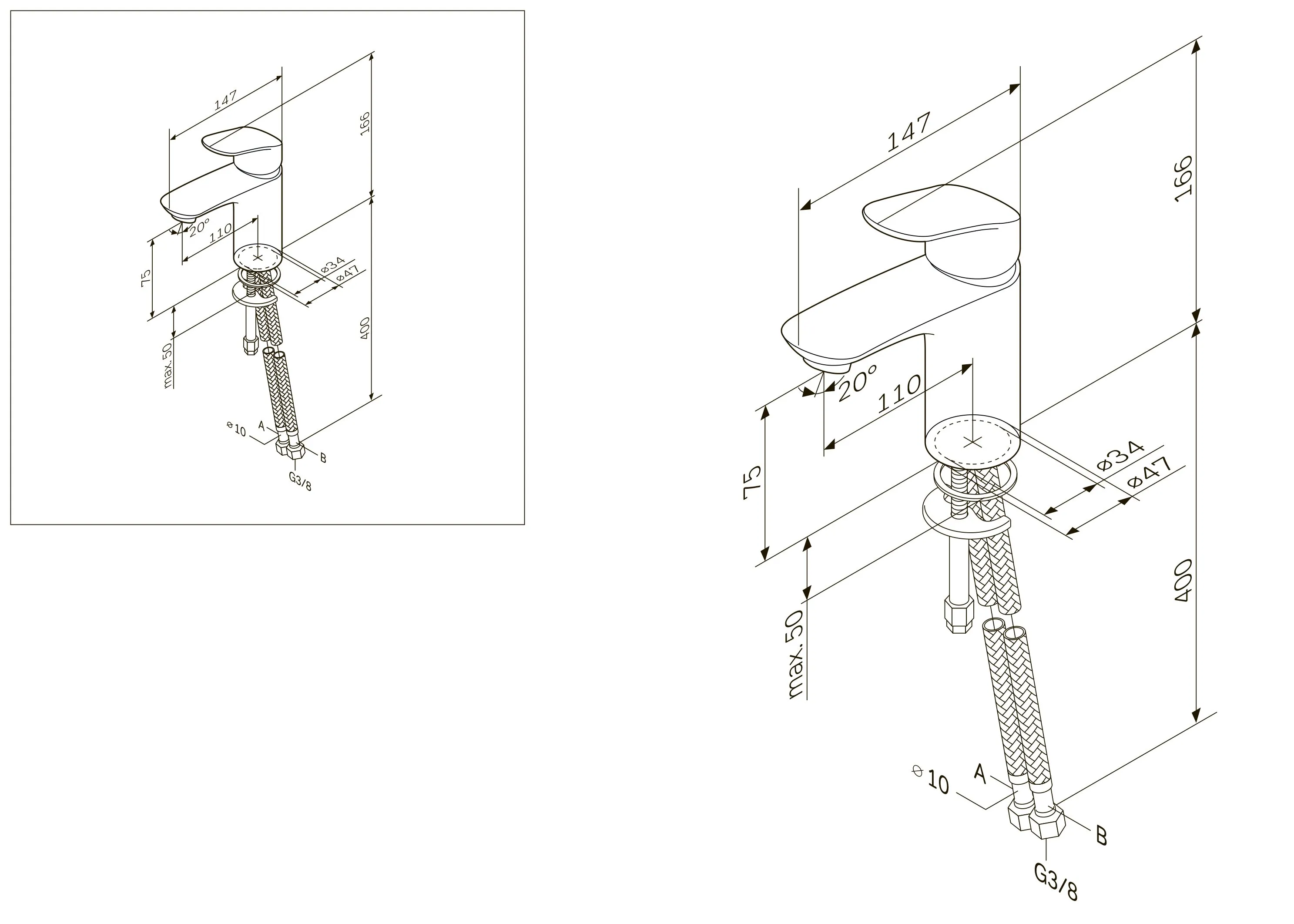 - Стандарт подводки: `3/8