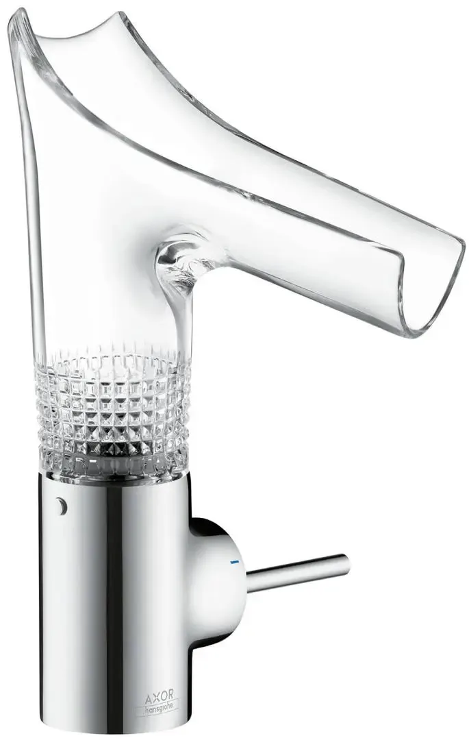 Смеситель для раковины стеклянный излив, с алмазной огранкой, хром
