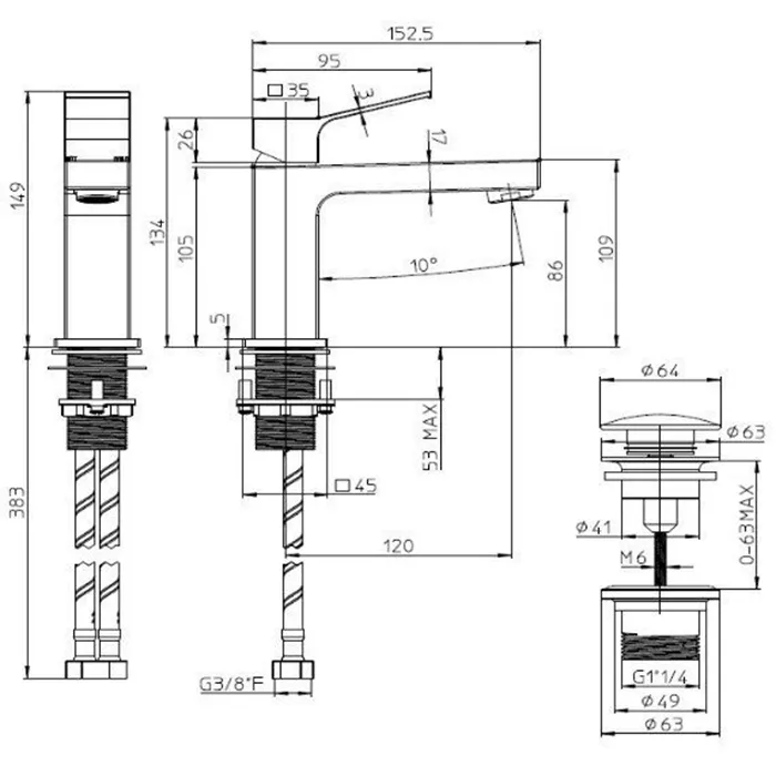 Смеситель для раковины Bossini Aki Line Z00707.073 черный