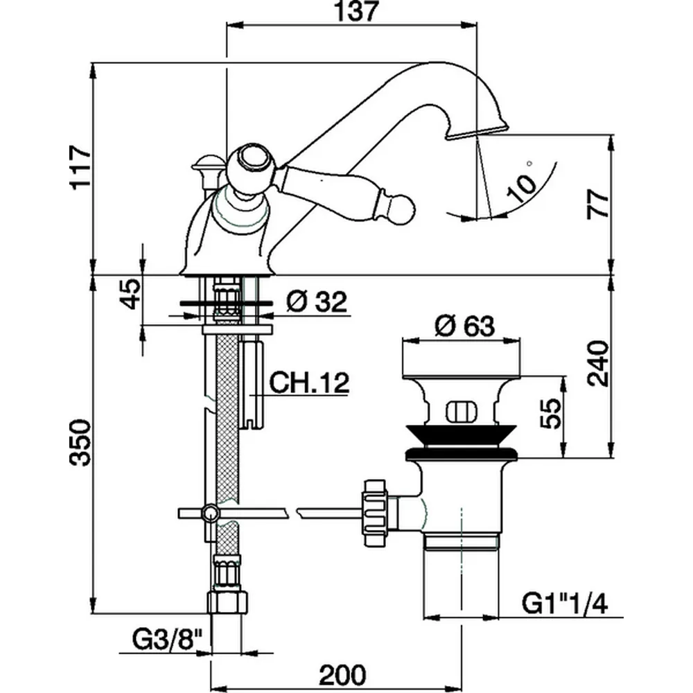 Смеситель для раковины Cisal Arcana Toscana TS00051027 Акция бронза