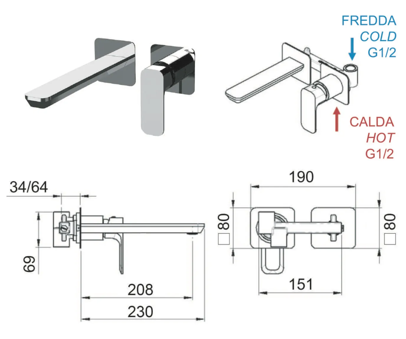 - Длина излива, мм: 230