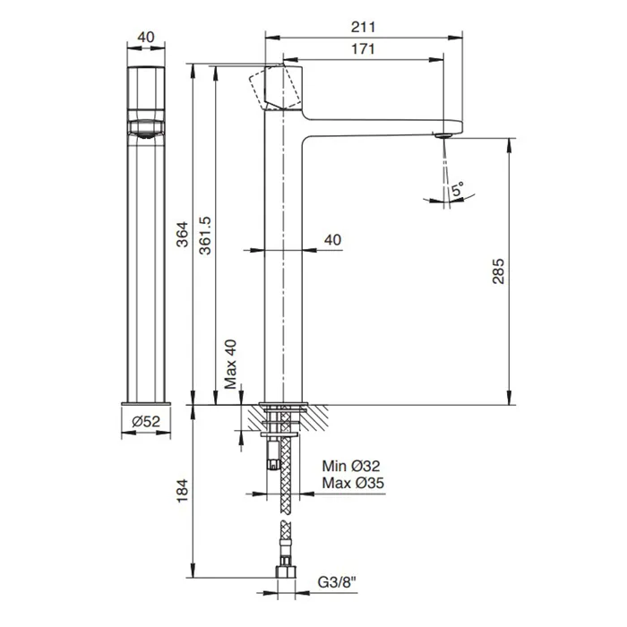 Смеситель для раковины Fantini Lame 24 02 M006WF хром