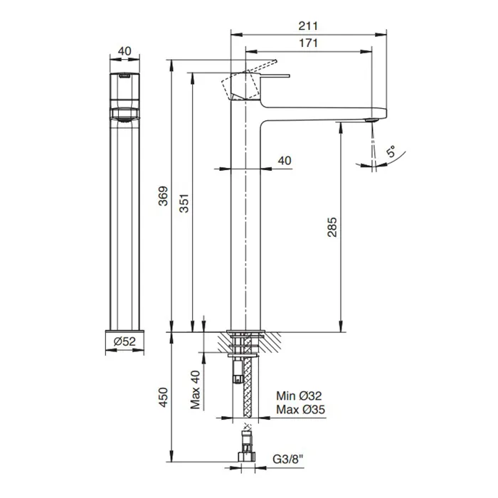 Смеситель для раковины Fantini Lame 24 02 M106WF хром