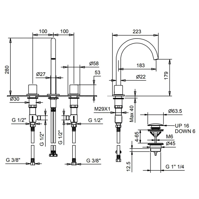 Смеситель для раковины Fantini Lame 24 02 M406 хром