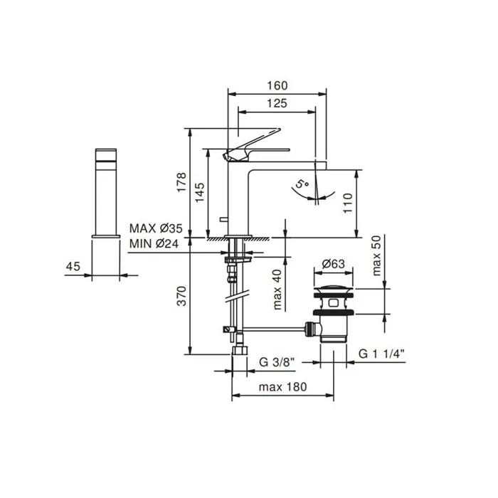 Смеситель для раковины Fantini Mint 34 93 F004F сталь