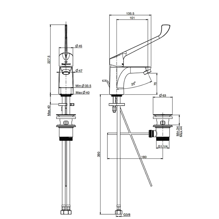 Смеситель для раковины Fima Carlo Frattini Collettivit F3831/LCCR.1.ES для лечебных учреждений, хром