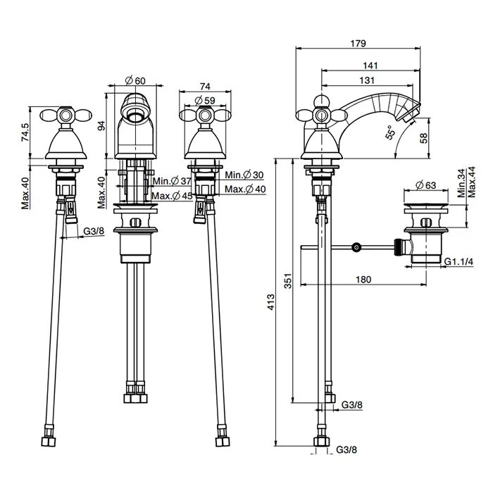 - Отверстия для монтажа: на 3 отверстия