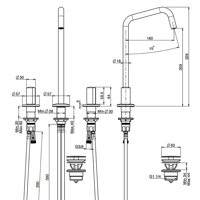 Высота излива, см