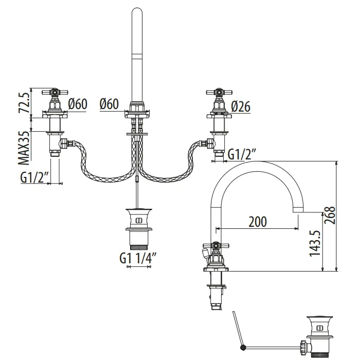 Смеситель для раковины Gattoni Trd TR097/18C0 хром