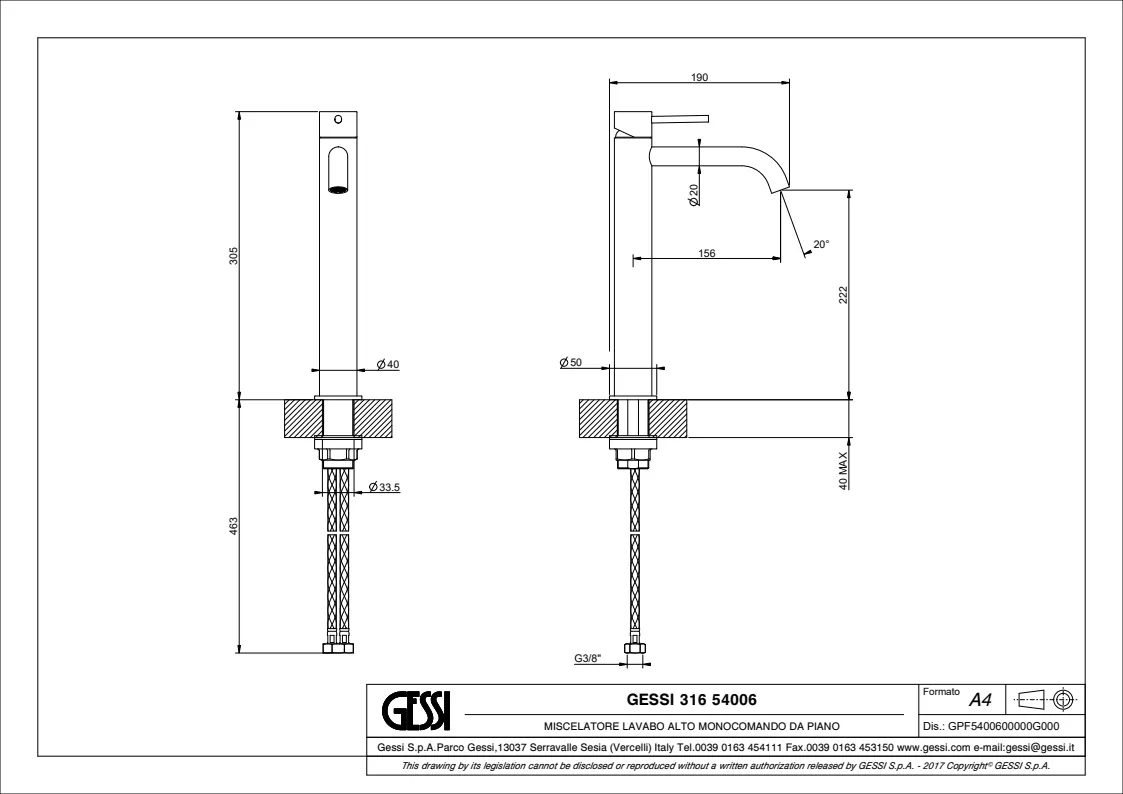 Смеситель однорычажный для раковины Gessi 316 Flessa 54095.239 в цвете сталь матовая с матовым покрытием pvd.