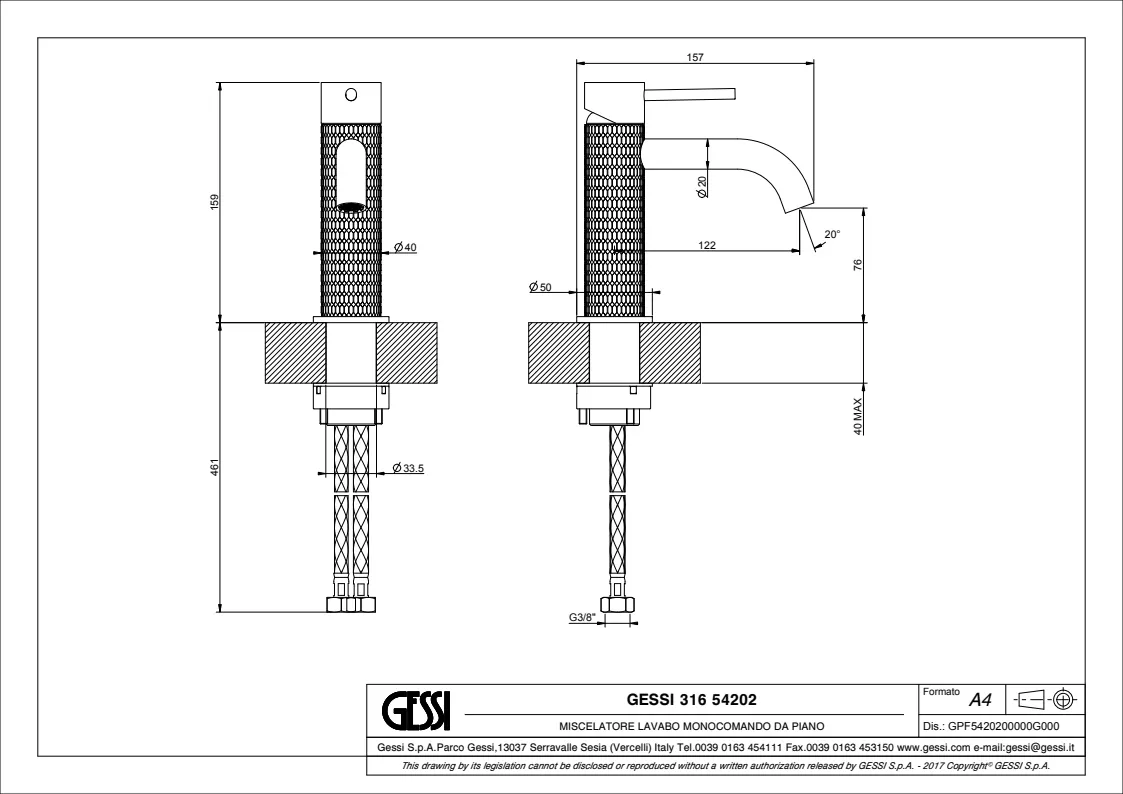 Смеситель для раковины Gessi 54202.726 Warm Bronze Brushed PVD