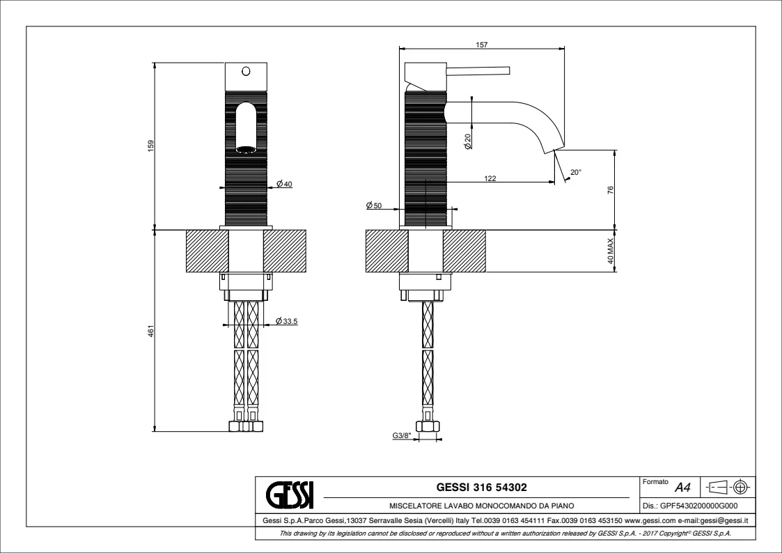 Смеситель для раковины Gessi 54302.708 Copper Brushed PVD