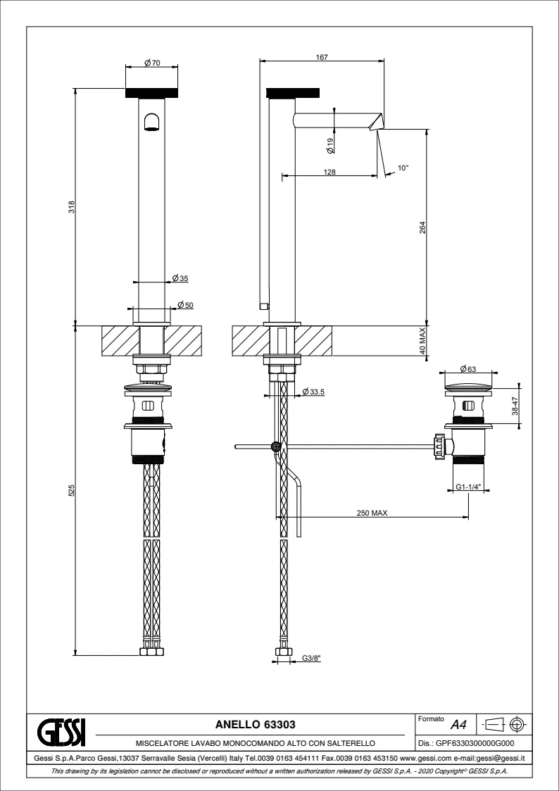Смеситель для раковины Gessi Anello 63303.727 Brass Brushed PVD