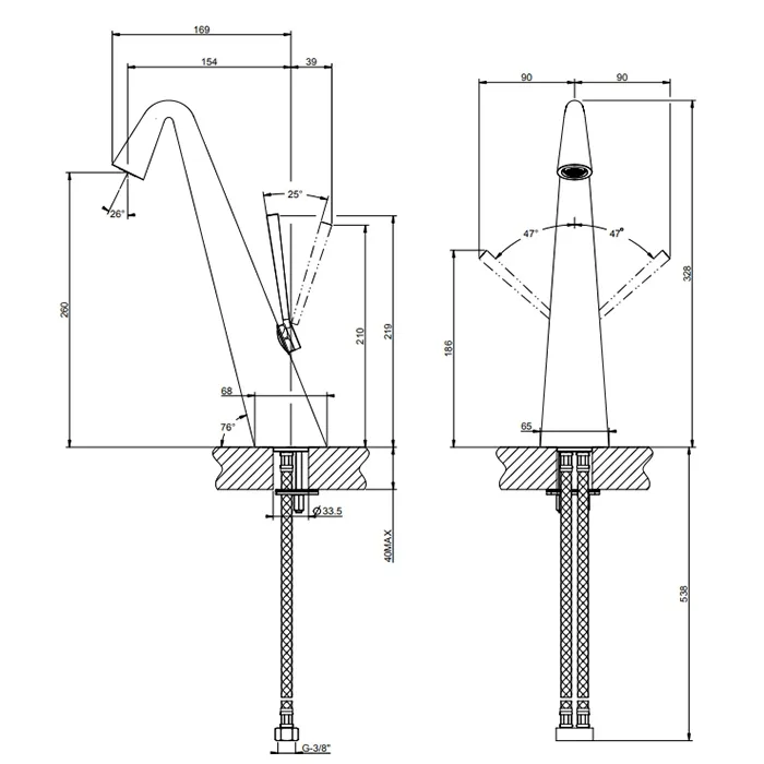Смеситель однорычажный для раковины Gessi Cono 45003.031 выполнен в цвете хром.