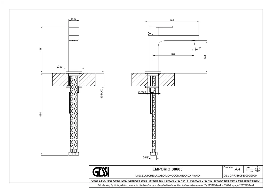 Смеситель для раковины Gessi Emporio Via manzoni 38605.149 Finox Brushed Nickel